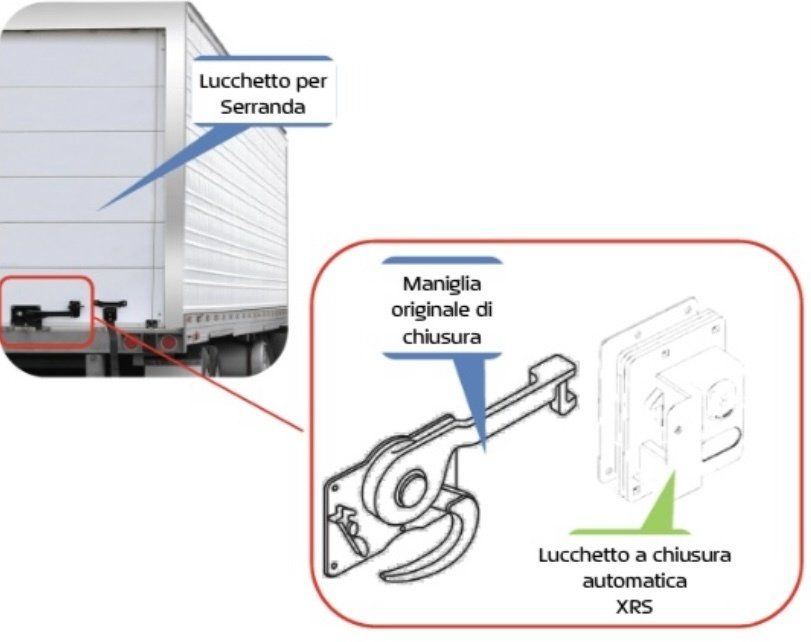 permette l'apertura della serranda. In fase di chiusura basterà spingere la maniglia della serranda per agganciarla automaticamente dentro il lucchetto XRS.